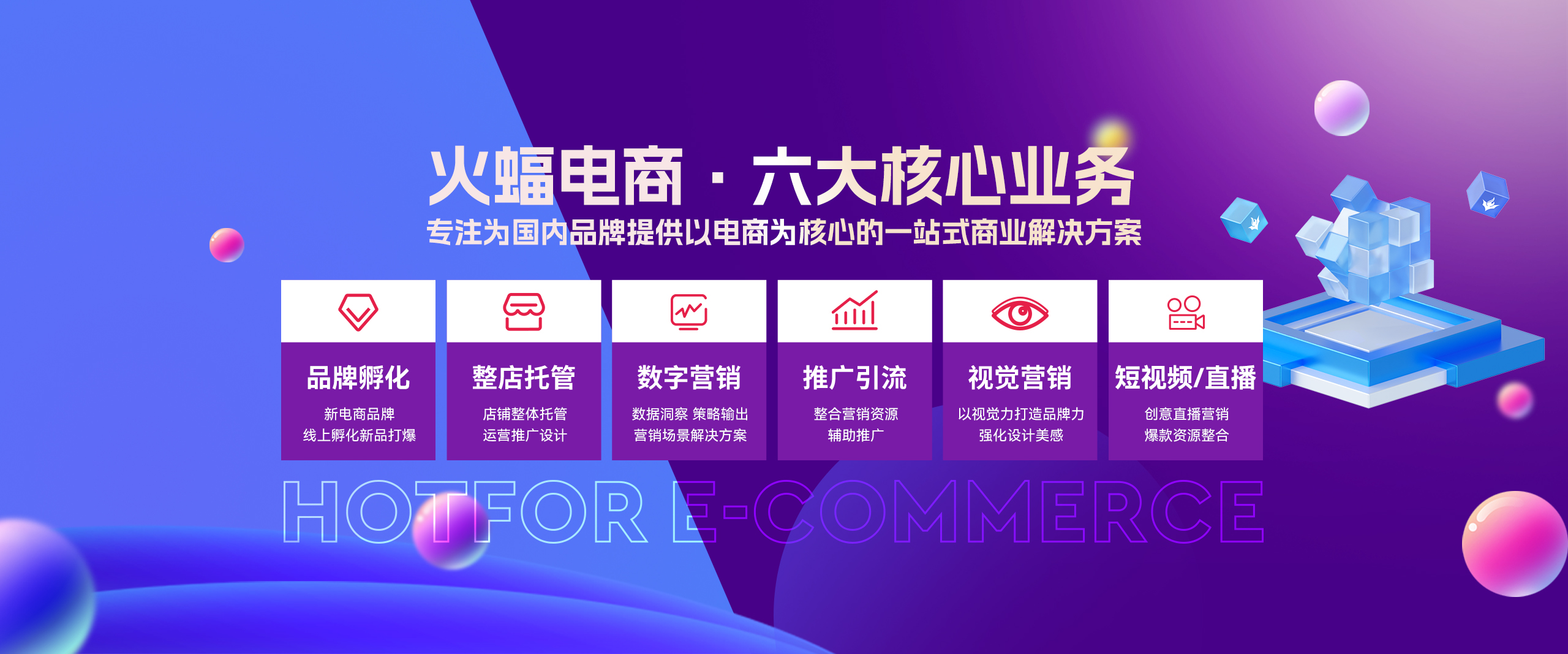 火蝠電商是一家國內優秀數據與技術電商服務公司。火蝠始終堅信每個品牌的商業難題都能找到答案,專注為國內品牌提供以電商為核心的一站式商業解決方案,面向未來,火蝠致力于打造全面融合的生態系統,形成電商運營,數字營銷,品牌升級,it解決方案,資源賦能五個生態圈。目前合作的全球優質品牌超60個,與包括云米,綠源,馬應龍,金龍魚,金味,科創者等在內的世界知名企業展開深入合作。