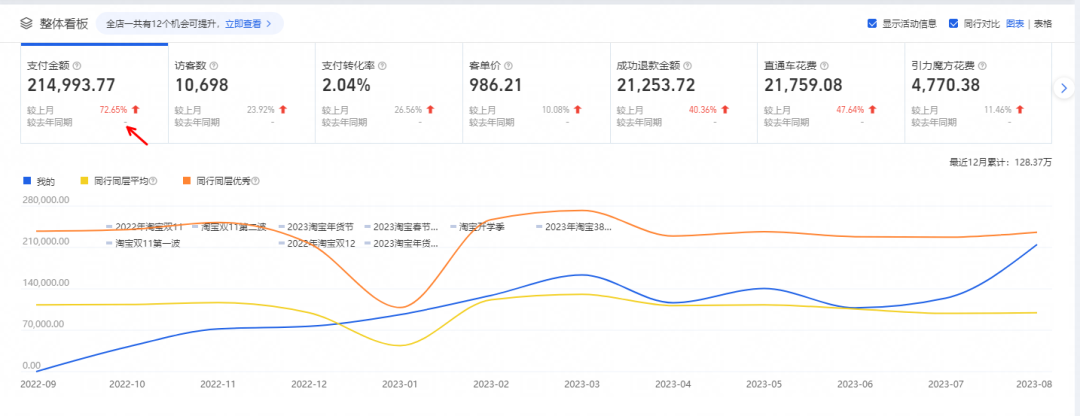 接手后,店鋪整體買家數上升22%,收藏人數上升50%,加購上升30%。