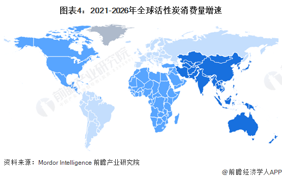 就我國情況來看,隨著工業部門對水的需求不斷增加,以及政府關于防止水污染和控制行動計劃的法規不斷變化,都增加了我國對水處理活性炭的需求;同時,近年來我國的食品飲料以及工業行業的市場規模不斷擴大,也帶動了活性炭需求量的不斷增長。根據Mordor Intelligence數據預測,預計在2021-2026年間,亞太地區將保持全球最高的的活性炭消費量增速,其中我國活性炭消費量增速將成為亞太地區整體高增的主要推動力。