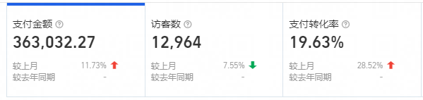 接手后:店鋪單月銷售額提升至36W+,支付轉化率提升至19.63%