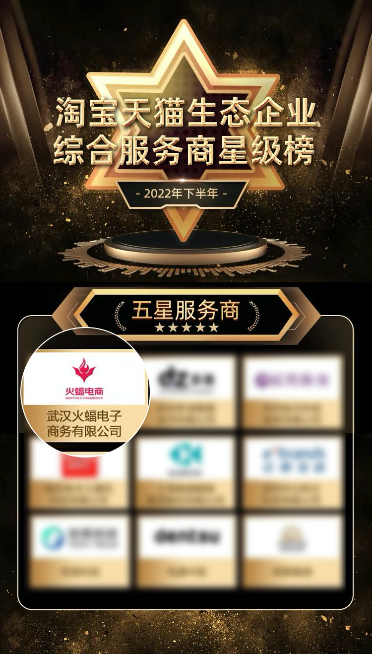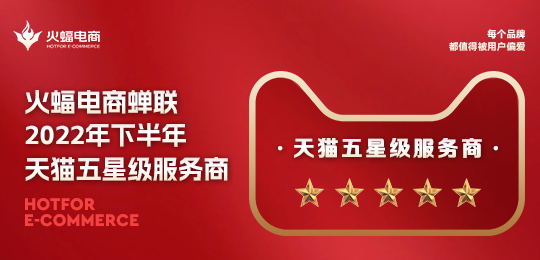 近日,2022年下半年淘寶天貓生態(tài)企業(yè)評級評優(yōu)榜單正式發(fā)布,火蝠電商憑借專業(yè)的精細(xì)化運(yùn)營服務(wù)能力與優(yōu)質(zhì)的數(shù)字化經(jīng)營能力,再次榮獲綜合服務(wù)商星級榜五星級服務(wù)商。