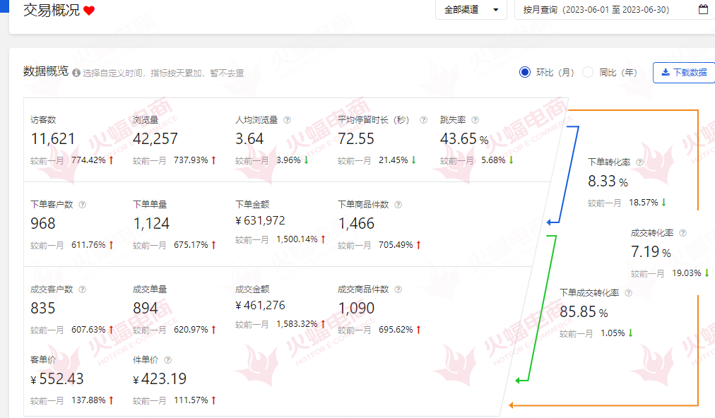 借勢618大促,成功“找對人,說對話”,整個項目從策劃到落地,短短一個月,團隊就高效完成了店鋪上線、頁面裝修、產(chǎn)品上架、推廣引流等相關(guān)工作,幫助品牌方京東店鋪銷量爆發(fā)。數(shù)據(jù)顯示,新開奶粉店鋪僅上線一個月,銷量突破46萬,訪客增長155.95%,整店數(shù)據(jù)取得持續(xù)增長。本次呈現(xiàn)的京東店鋪奶粉類目案例,不僅獲得了品牌主秦浩(化名)的高度贊許,也再次強有力地證明了火蝠電商在多電商平臺運營和數(shù)字化營銷等方面的綜合實力。