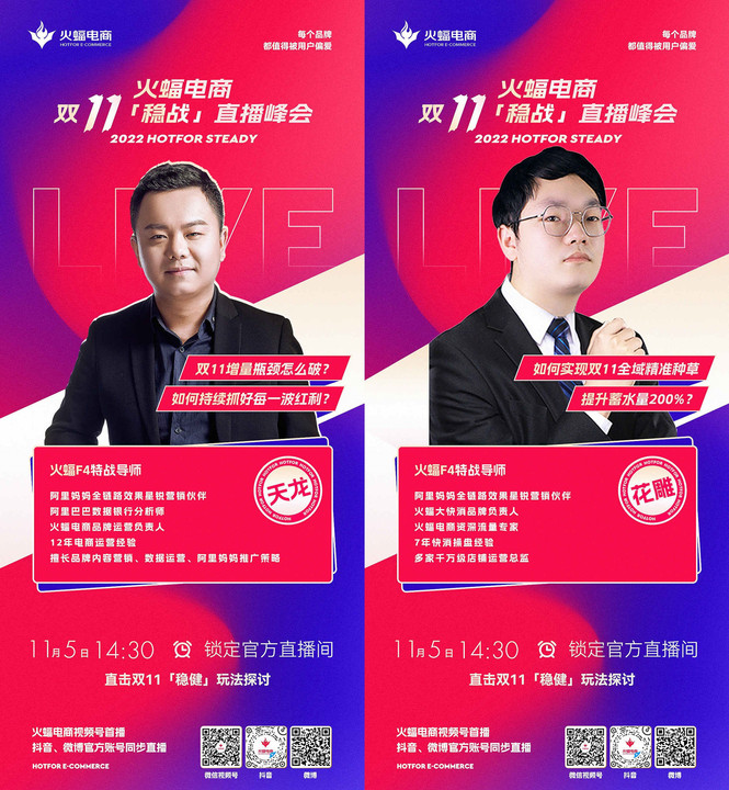 11月5日14:30,敬請關注火蝠電商視頻號,與特戰導師們一起「穩戰」雙十一。