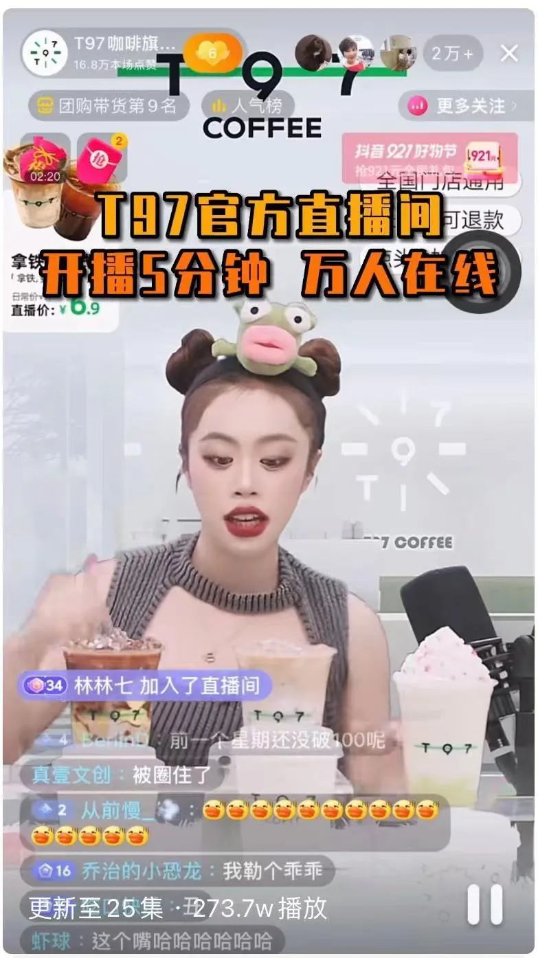 T97咖啡旗艦店女主播用唱Rap的方式賣咖啡,伴隨著魔性的Bgm,直播間流量瘋狂上漲,一躍成為本地生活賽道現(xiàn)象級(jí)直播間。
